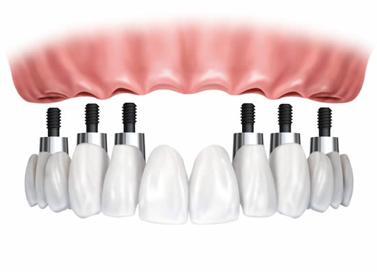 Whilst individual dental implants are an excellent method for replacing a missing tooth; where a number of teeth have been lost, replacing them individually in this manner would be both costly and require extensive treatment.